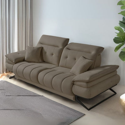 Divano Marzia 3 posti con schienali basculanti e poggiatesta reclinabili in tessuto buffalo 905 tortora