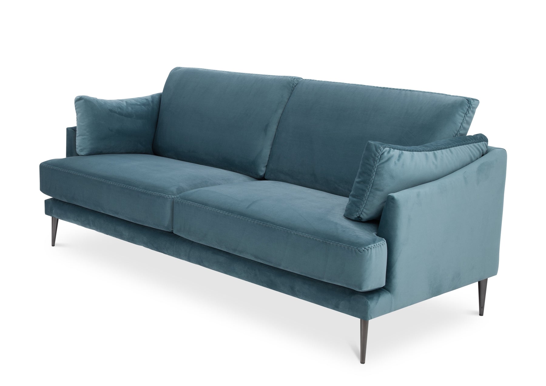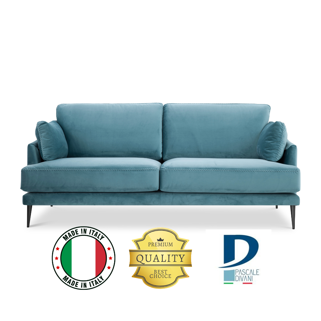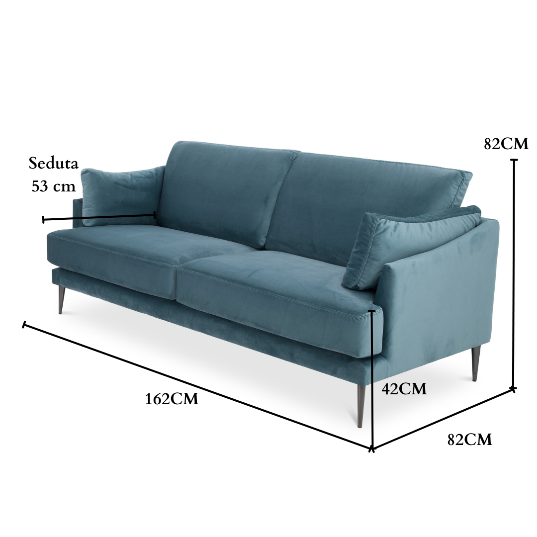 Elegante Divano 2 Posti Maxi L162 x P82 x H82 cm in Tessuto Louvre Turquoise con Piedi in Metallo e Cuscini in Poliuretano Espanso Ecologico