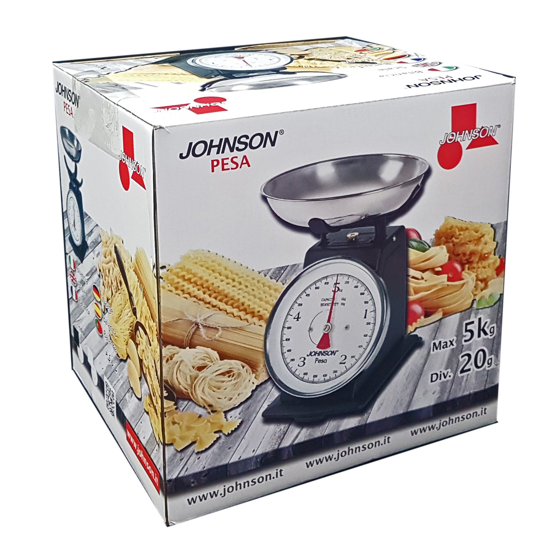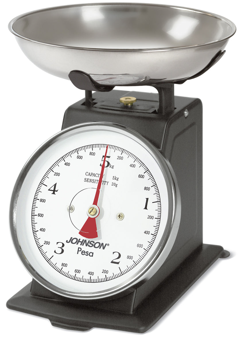 BILANCIA DA CUCINA JOHNSON PESALa bilancia da cucina JOHNSON PESA è stata progettata con un aspetto retrò ma è estremamente affidabile e precisa. Con un ampio quadrante bianco ben visibile, darà un tocco di retrò alla cucina. La bilancia da cucina JOHNSON PESA, pesa fino a 5kg con una divisione di 20gr, inoltre dispone di una ghiera per la funzione tara ed ha un vassoio removibile. La bilancia da cucina JOHNSON PESA non necessita di alcuna manutenzione.Specifiche sul prodotto:Bilancia meccanica.Funzione tara.Vassoio removibile.Portata: 5 Kg.Graduazione: 20mg.Struttura bilancia colore nero.Quadrante colore bianco.
