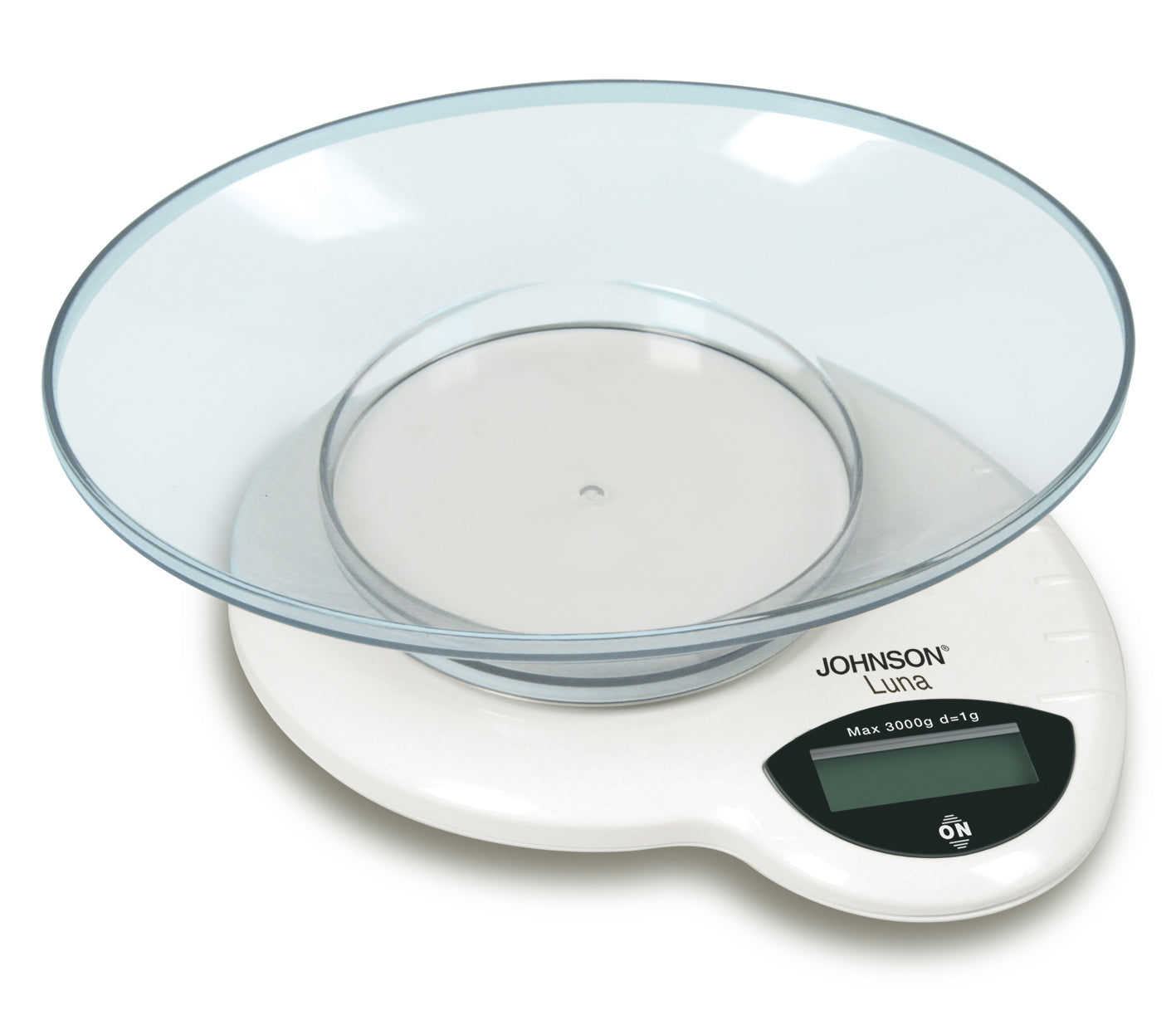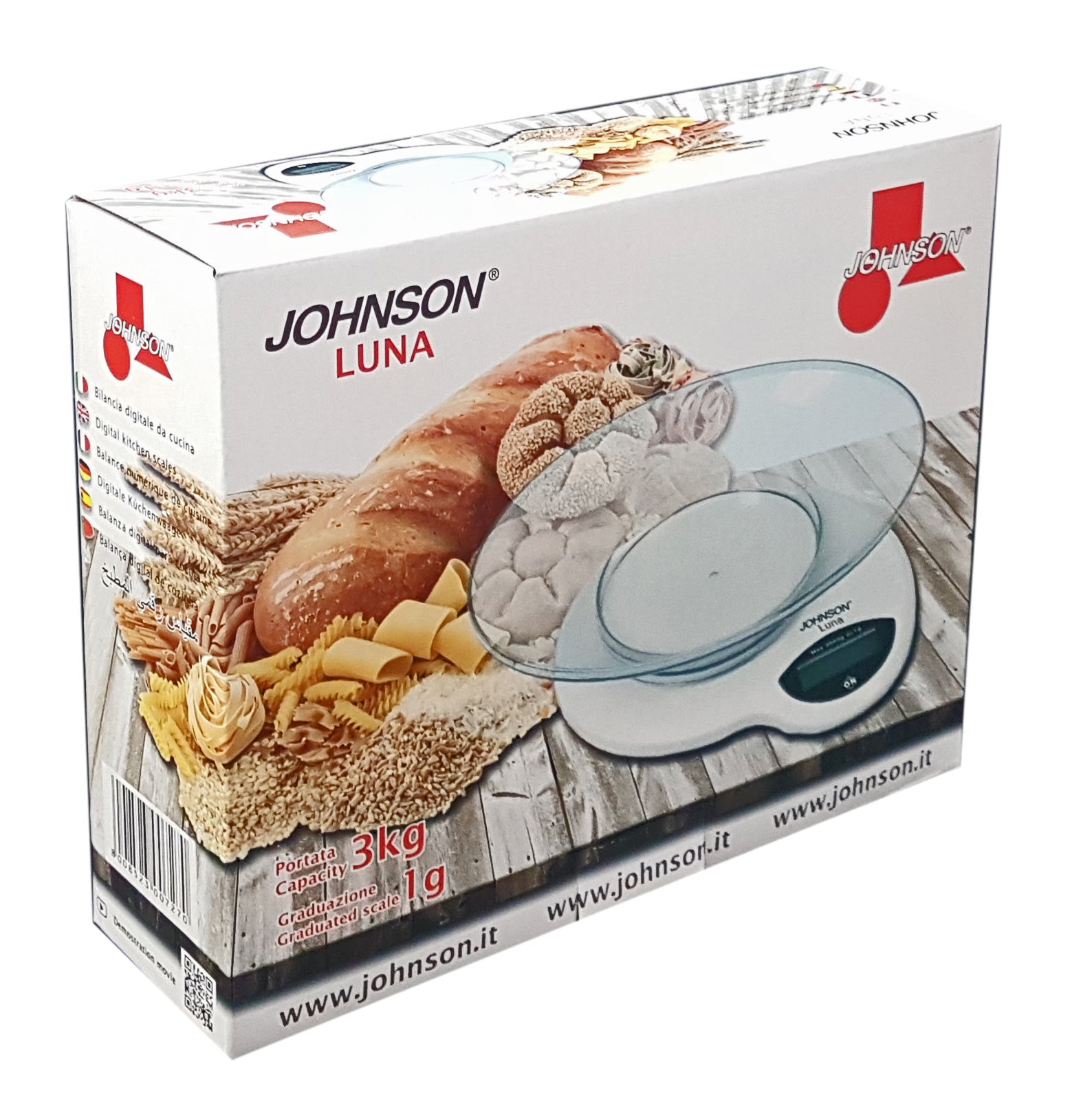 Bilanci da cucina modello "Luna" - Johnson - Bilancia digitale da cucina dotata di sensore da alta precisione - Divisione di 1g, con una portata massima di 3000 g - Costruita con plastica resistente agli urti - Facile da pulire - Battierie incluse