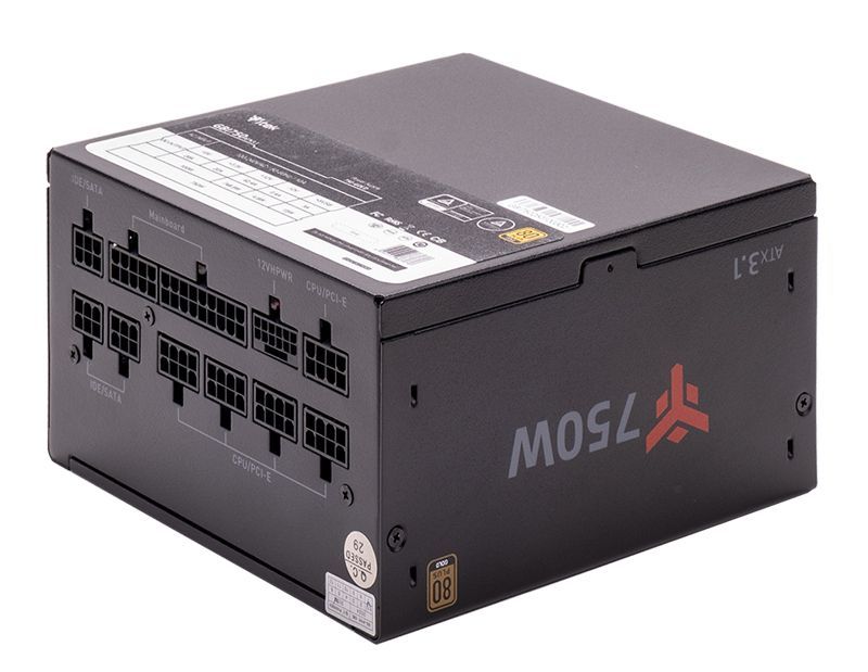 itek GBI750. Potenza totale: 750 W, Tensione di ingresso AC: 100 - 240 V, Tipo di correttore del fattore di potenza (PFC): Attivo. Connettore scheda madre: 20+4 pin ATX, Lunghezza del cavo di alimentazione della scheda madre: 60 cm, Lunghezza del cavo di alimentazione SATA: 150,450 mm. Utilizzo: PC, Fattore di forma dell'unità di alimentazione (PSU): ATX, Certificazione 80 PLUS: 80 PLUS Gold. Colore del prodotto: Nero, Tipo di raffreddamento: Attivo, Diametro del ventilatore: 14 cm. Larghezza: 150 mm, Profondità: 150 mm, Altezza: 86 mm