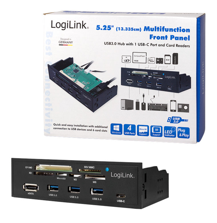 Pannello Frontale 5,25'' Multifunzione con Lettore di Memorie 6 vie