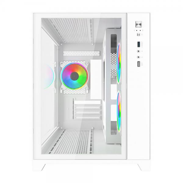 VIDA Akira V2 Bianco (Vida Akira V2 White ARGB Gaming Case w/ Glass Front & Side, Micro ATX, 3x ARGB PWM Fans, 6-Port ARGB Fan Hub & Remote Control)