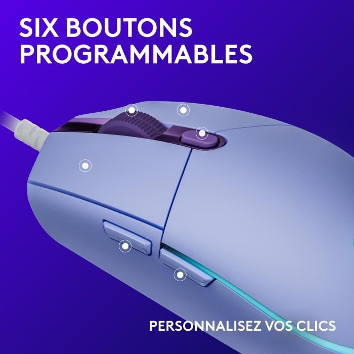 Mouse da gioco cablato - LOGITECH G - G203 - LIGHTSYNC - RGB - Colore lilla