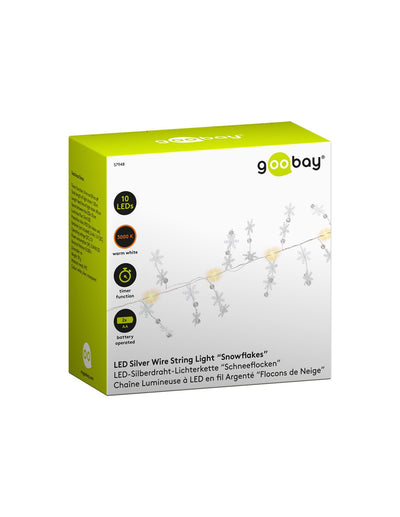 Stringa 10 LED Fiocchi di Neve IP20 Bianco Caldo a Batteria con Timer