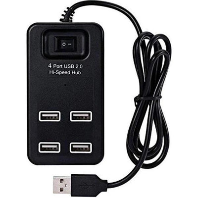 Adattatore Hub Usb 2.0 con interruttore - 4 porte - Nero