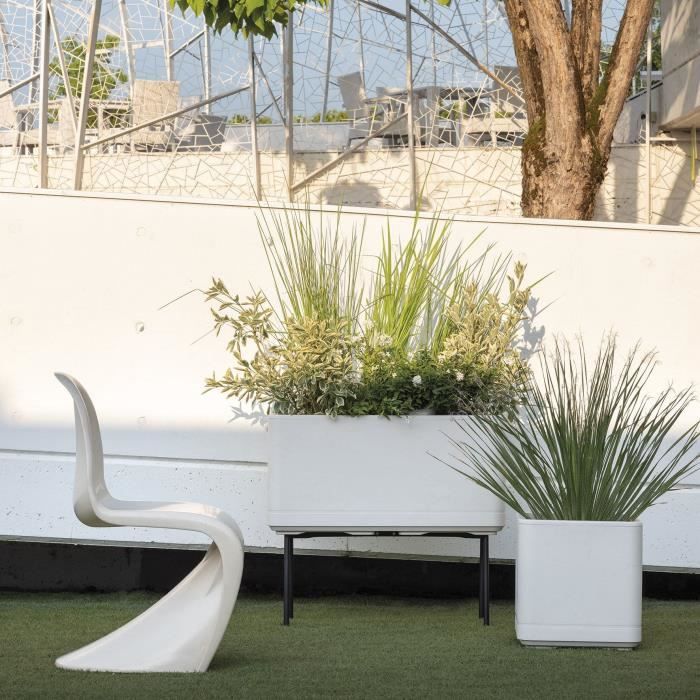Vaso Cubo - DEROMA - Cosmo - Perla - Con riserva d'acqua - Ruote - 38 cm