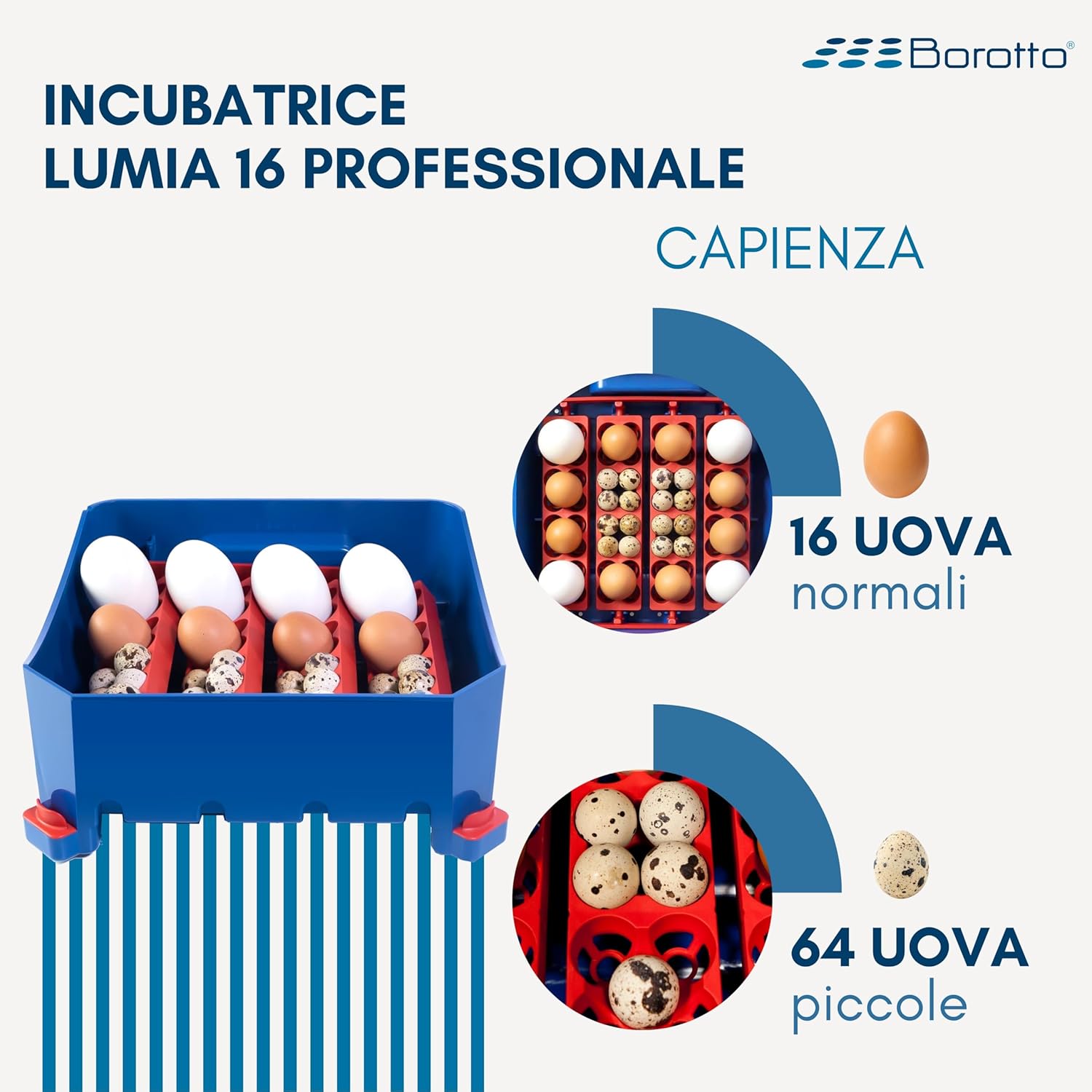 Borotto Lumia 16 Automatica - Incubatrice Professionale Brevettata, con Girauova Automatico - per 16 Uova Medio/Grandi o 64 Uova Piccole