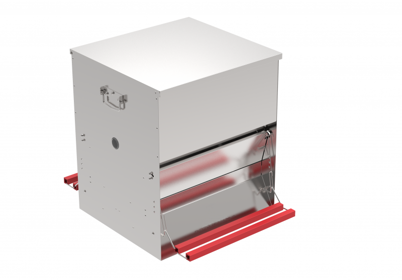 Una mangiatoia automatica a pedale bilaterale per i più esigenti. Una vera bilaterale, cioè un multiaccesso accessibile da entrambi i lati per l’alimentazione dei vostri volatili.Con questa mangiatoia automatica bilaterale, non avrete più il fastidio degli animali nocivi, come topi, ratti ed altri uccelli che consumano ed inquinano il mangime dei vostri volatili.La mangiatoia può essere utilizzata anche all’esterno, mantenendo il mangime protetto e ben asciutto.Come viene azionata la mangiatoia automatica a pedale 50 KG:quando i vostri volatili salgono sul doppio trespolo a pedale, la parte bassa della mangiatoia si apre a basculante, garantendo l’accesso al mangime.I suoi vantaggi:– Rifornimento del mangime più facile, grazie al coperchio che resta aperto in maniera verticale.– Varie possibilità di regolazione per l’apertura della mangiatoia a seconda del peso del volatile.– Le parti in plastica e la struttura zincata sono fabbricati con materiali di alta qualità, tutti resistenti ai raggi UV e molto durevoli.– Maniglie laterali per il trasporto.– Indicatori laterali di riserva.– Ottimi spessori della struttura dove rendendo la mangiatoia molto robusta e stabile.– Sistema a trespolo semplificato, sulla quale non si possono accumulare gli escrementi.Capacità: 50 kgMisure (fronte, larghezza, altezza) 71x50x60 cmPeso: 8,5 KgMateriale: in metallo zincato