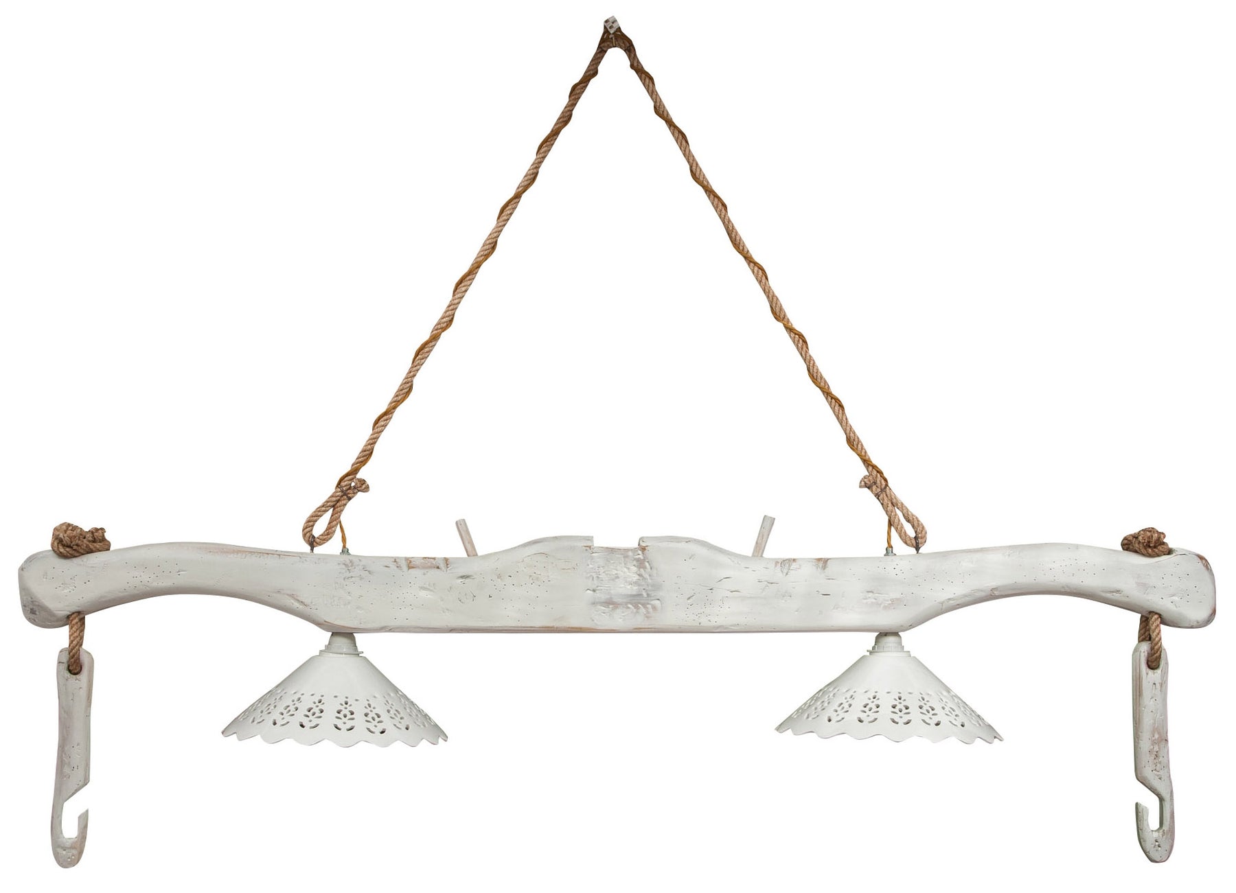 Giogo in legno massello di tiglio di dimensioni L161xPR30xH41 cm. Elettrificato, con due piatti paralume in ceramica si trasforma in un originalissimo lampadario in grado di donare un tocco di stile Country e una soffusa e calda illuminazione a qualsiasi ambiente Grazie alla sapiente e scrupolosa lavorazione artigianale Made in Italy e alla cura dei minimi particolari, sapientemente invecchiato e asciato a mano, presenta tutte le caratteristiche del vecchio attrezzo utilizzato dalle vacche. Interamente lavorato a mano, ogni articolo è da considerarsi un pezzo unico, ideale per chi ama arredare ambienti rustici.