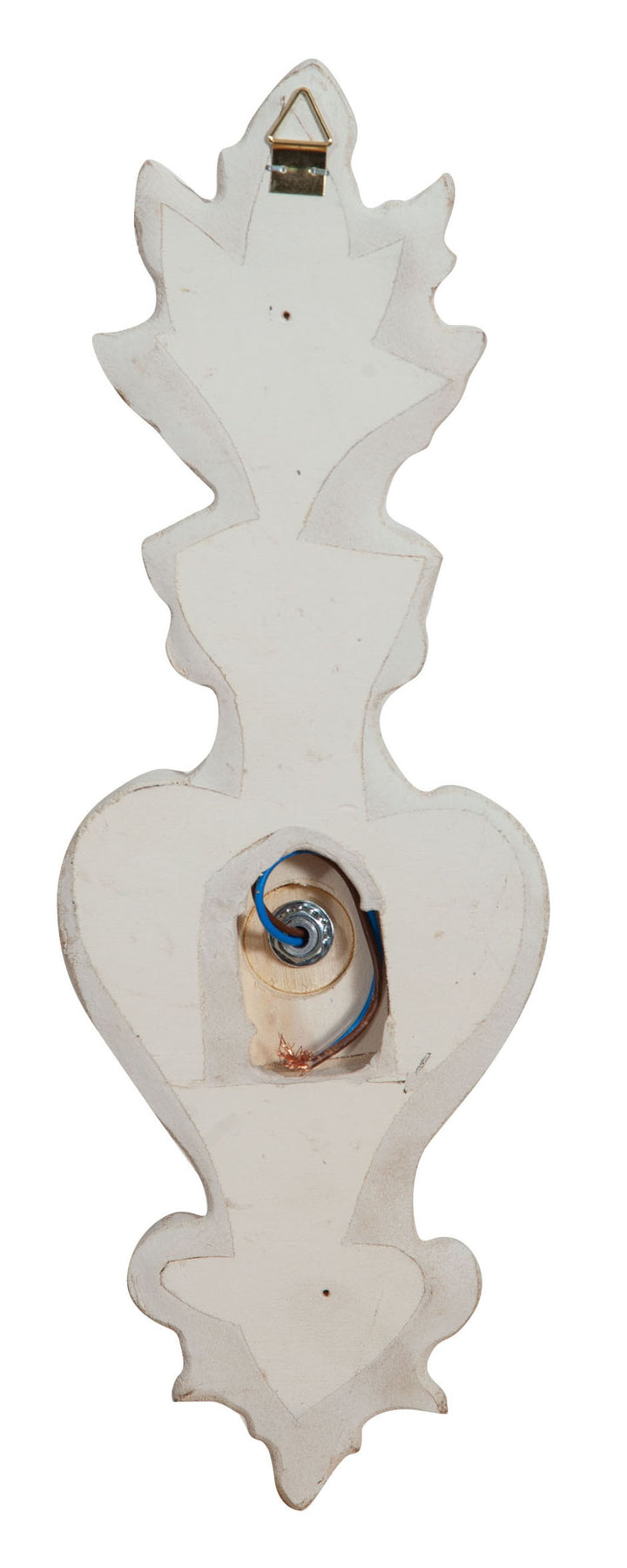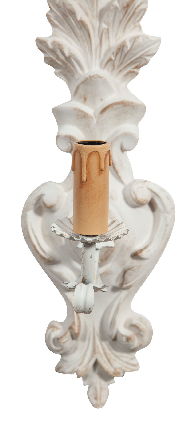 | Applique in legno decapato ad una luce in ferro finitura bianco anticato di dimensioni lunghezza 12 cm, profondità 19 cm, altezza 38 cm. Impreziosita da intagli, è ideale complemento per qualsiasi ambiente a cui conferisce un tocco di stile romantico Shabby. Punto di riferimento indiscusso per chi vuole arredare , per chi vuol decorare casa con qualità ed eleganza. Articolo interamente realizzato in Italia. |