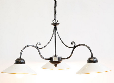 LAMPADARIO BAITA 3 LUCI FERRO BATTUTO LAMPADE LAMPIONE LANTERNA PLAFONIERA