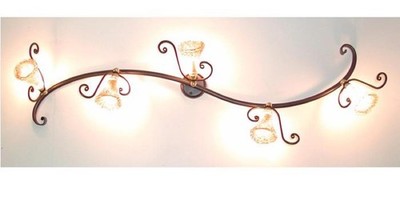PLAFONIERA FARETTO IN FERRO BATTUTO E VETRO 5 LUCI LANTERNA APPLIQUE LAMPIONE
