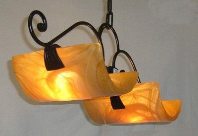 LAMPADARIO 2 COPPI IN LINEA IN FERRO BATTUTO LANTERNA APPLIQUE LAMPIONE LAMPADE
