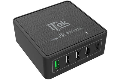 Caricabatteria da tavolo da 60W- 13.2A(2x3A- 3x2.4A) con 5 porte: 1xUSB-C PD- 3xUSB Smart- 1xQC3.0- Smart IC