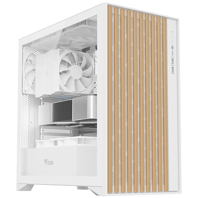 Case WOODY - Gaming Tower- ATX- 3x14cm White fan- 2xUSB3- Type-C- Wood Front- Temp Glass Side Panel- White Edtion