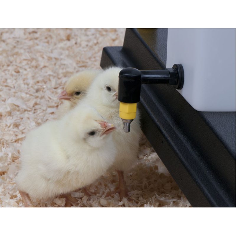 Abbeveratoio a goccia con serbatoio da 1 LComodissimo abbeveratoio con coperchio di chiusura proteggi impurità e nipple speciale ergonomico per pulcini.Ideale anche per la somministrazione di medicinali.Sistema antigoccia.Altamente igienico.Lo si può appoggiare sulla chioccia artificiale o altro supporto, oppure possibilità di fissaggio su gabbia (staffa di fissaggio inclusa in confezione).Questo abbeveratoio è idoneo per i pulcini.