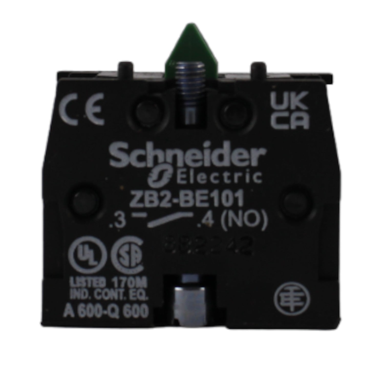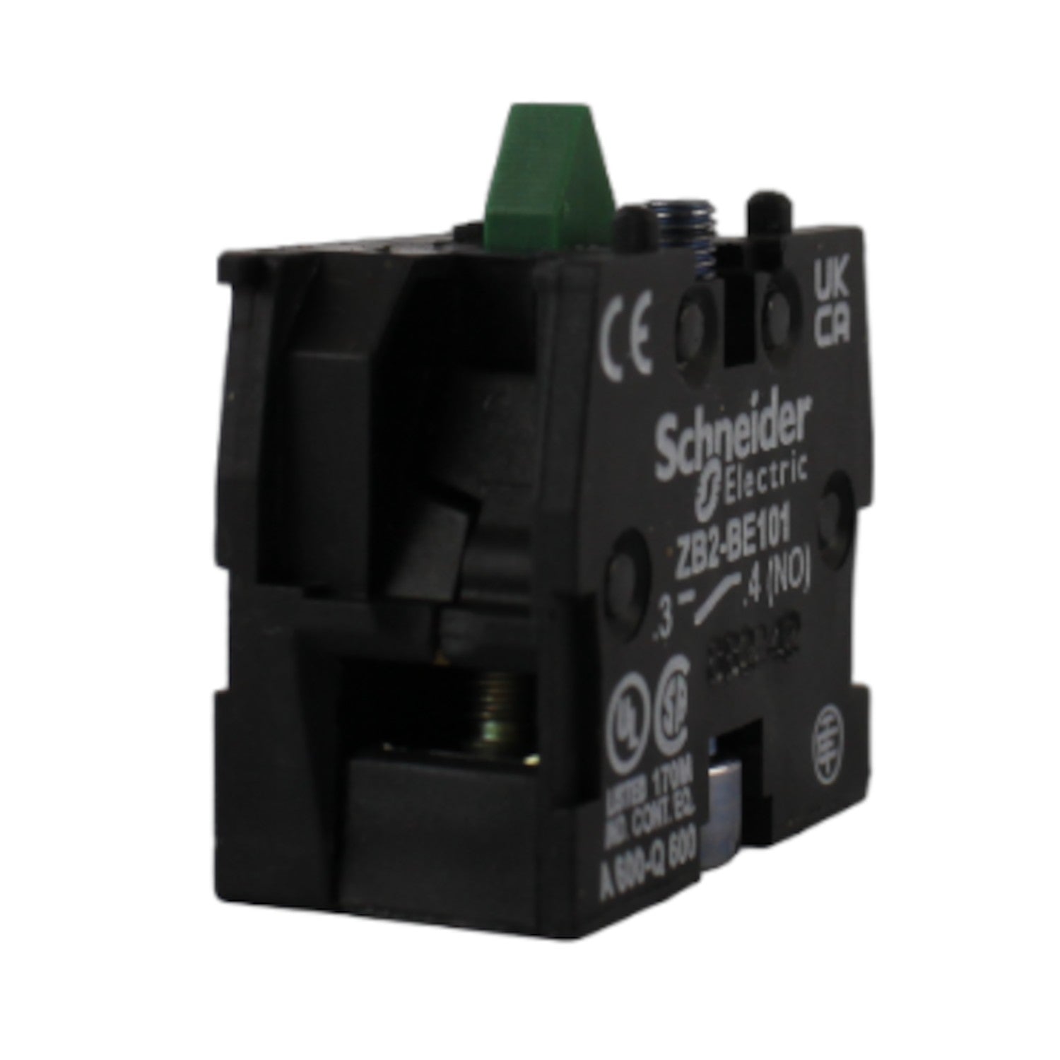 Il contatto 1NO ZB2-BE101 di Schneider Electric è un componente elettrico progettato per essere utilizzato all'interno di pulsantiere industriali. La sua funzione principale è quella di stabilire un circuito elettrico quando un pulsante viene premuto.