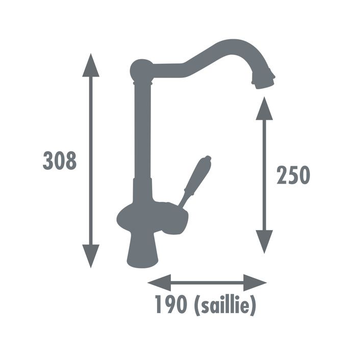 Stile retrò - Meccanismo: ceramica cartuccia Ø 35mm - Economia di acqua: la riduzione del flusso aeratore - Maniglia: metallo + ABS bianco - Corpo: ottone - becco retrò - Base Ø 43 millimetri - Tubo: acciaio F 3/8 - Garanzia del produttore: 5 anni