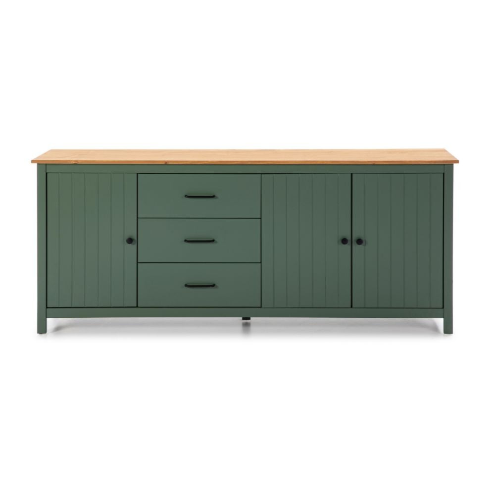 Credenza Miranda con 3 ante e 3 cassetti in legno massiccio verde con top pino