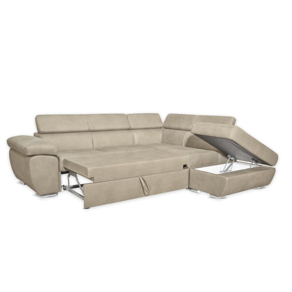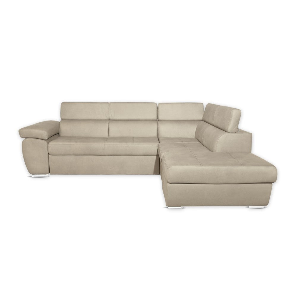 Divano Fiona angolare con penisola destra in tessuto Barrel09 cappuccino